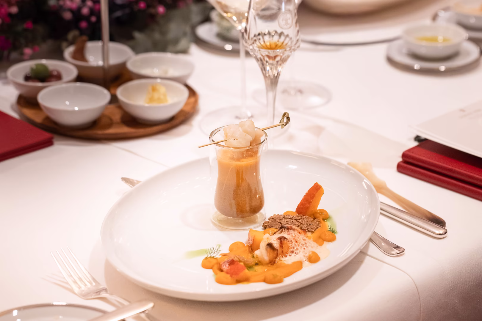Jeder Gang ist eine Hommage an Textur, Duft und Geschmack – ein Dialog zwischen edlem Kristall und feinstem Porzellan, der selbst erfahrene Genießer überrascht.