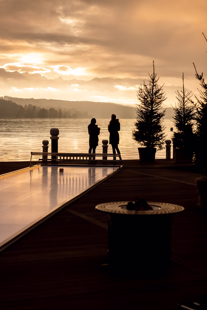 Heiße Maroni, gebrannte Mandeln, hausgemachter Glühwein und Punsch. Das sind die Klassiker, die den weihnachtlichen Duft versprühen. Ergänzt werden sie am Glühweinstandl von Delikatessen wie Champagner mit Austern, Kaviar-Trüffel-Flammkuchen, Schmalzbrot vom Wagyu Beef, Mini-Selchwürsten, pikante und süße Waffeln. Getoppt wird das alles noch mit Extravagantem: Eisstockschießen auf der einzigartigen Infinity-Bahn direkt auf dem Steg unter Anleitung des einheimischen Stockmeisters, Foto-Posing beim Kärntner Herzerlbaum und Schwimmen in die leuchtende Zukunft im bis zu 28 Grad beheizten Seebad. Staunen ohne Ende ist bei diesem stillen Advent am See garantiert.